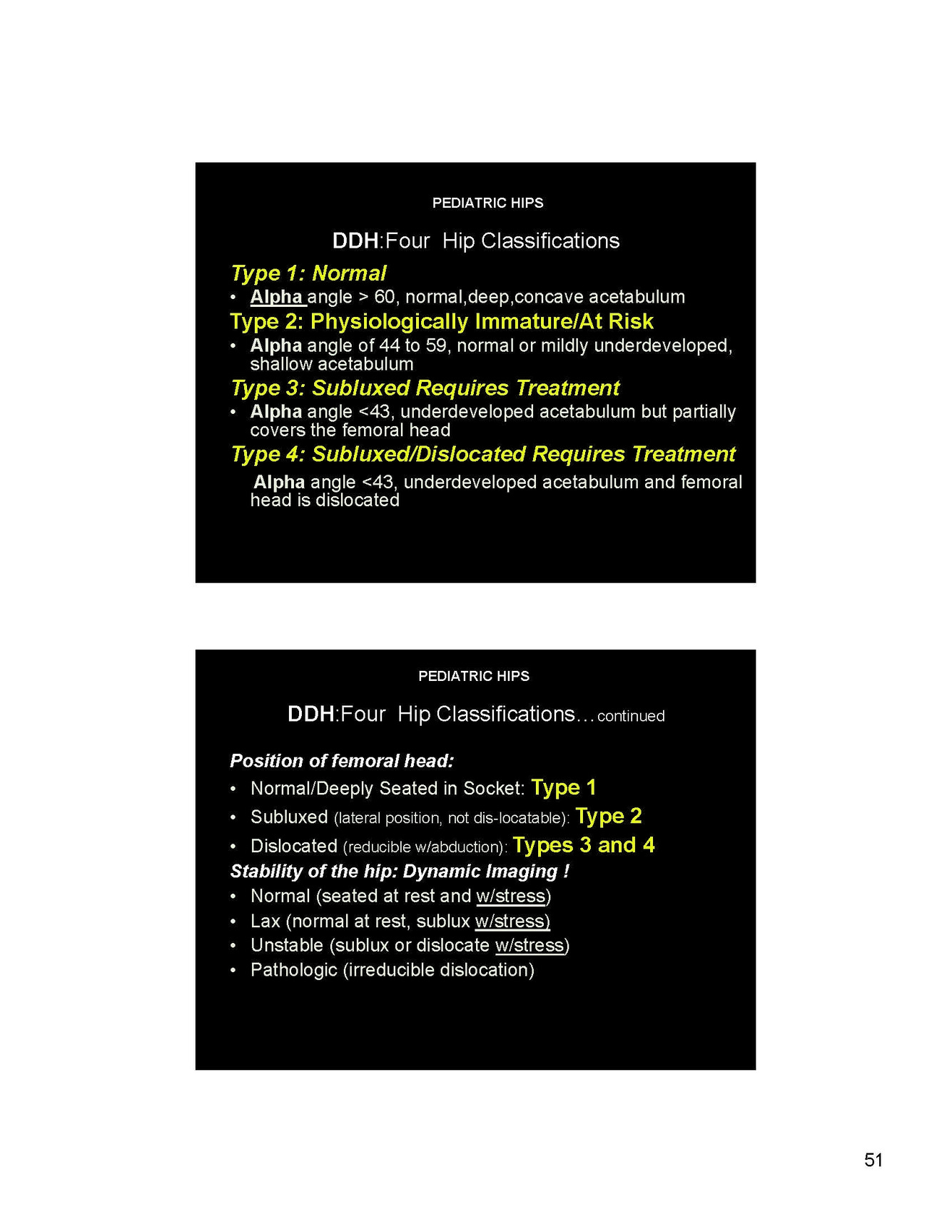 Name the four DDH hip classifications