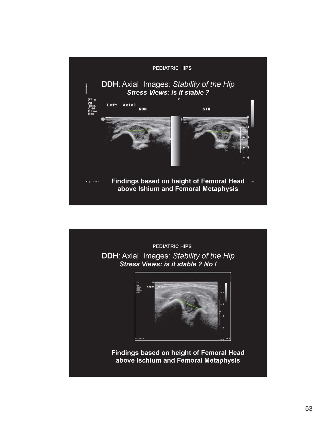 What is the stability of a pediatric hip on stress views?