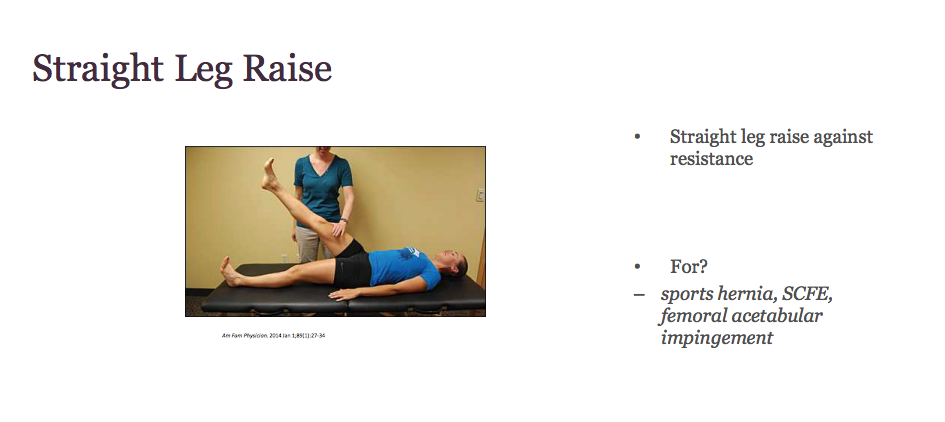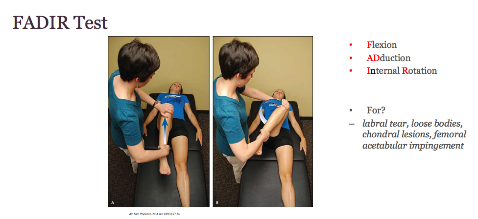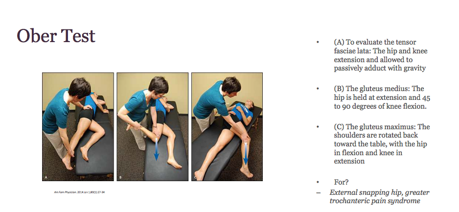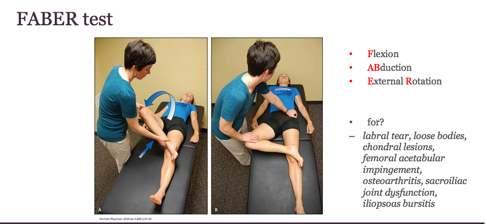 – Specialty test: may have positive test on FABER and Ober test