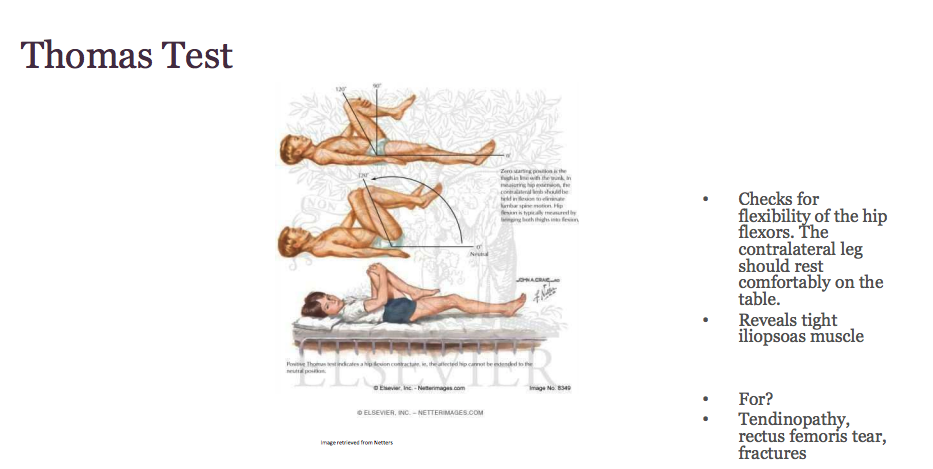 Specialty testing: positive Thomas test