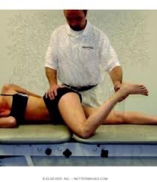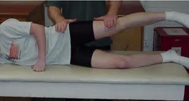 Position: subject is sidelying with the nontest limb supported in 25 degrees of abduction, put it on your shoulder