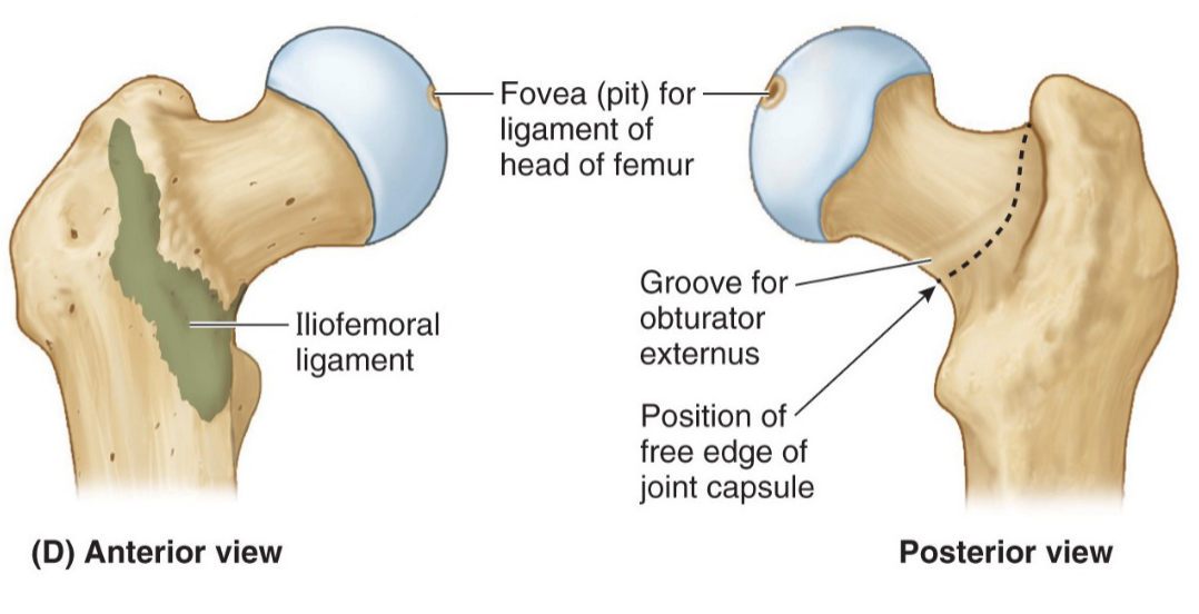 femoral head fits into the acetabulum, creating a ball-and-socket configuration.