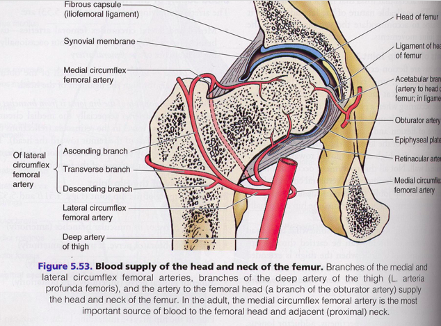 However, this artery is not big enough in an adult to give an adequate blood supply to the head of the femur so it’s relatively unimportant later in life.