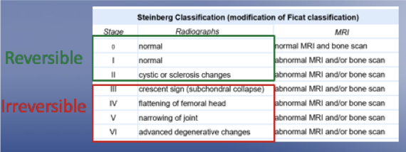 AVN is staged by the steinberg classification, what is this