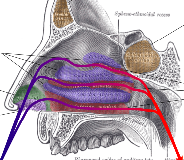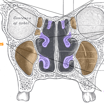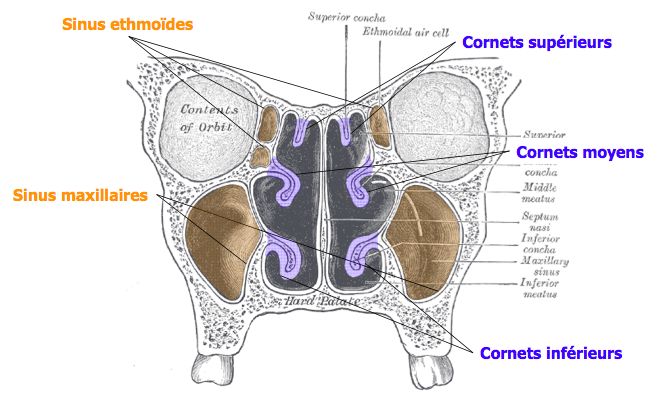 Cornets du nez : lamina propria et vaisseaux sanguins