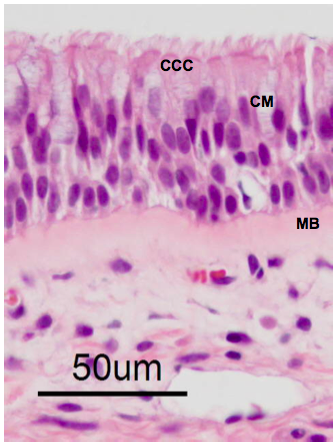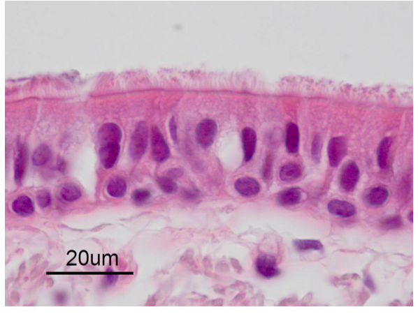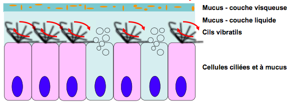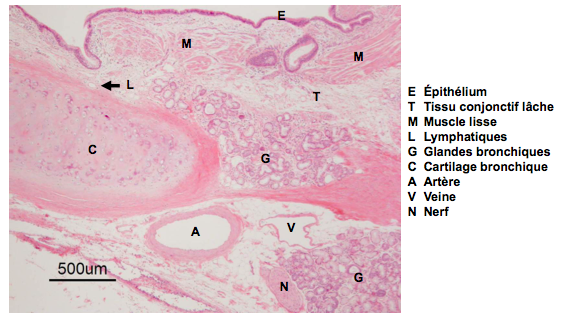 L’épithélium bronchique est de type cylindrique cilié pseudostratifié (aussi appelé de type respiratoire).