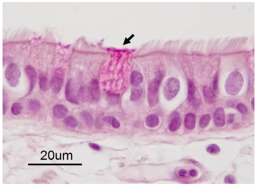 Décrire les cellules à mucus de l’épithélium respiratoire