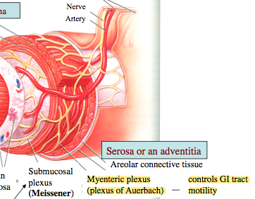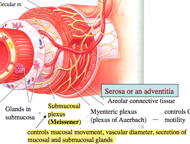 Where is the location of the nerve plexus which controls mucosal movement, vascular diameter, and secretion of mucosal and submucosal glands?