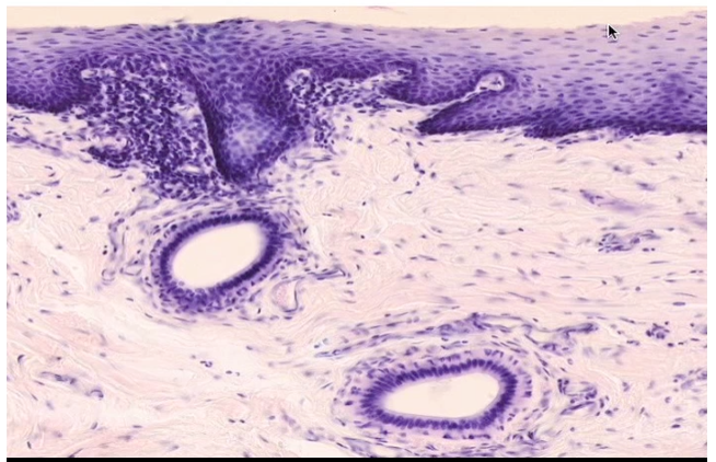 (Remember everything that’s not hard palate, gingiva, or dorsum of tongue is lining epithelium)