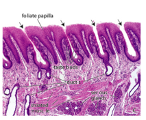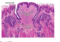 Which type of specialized oral mucosa doesn’t have taste buds?