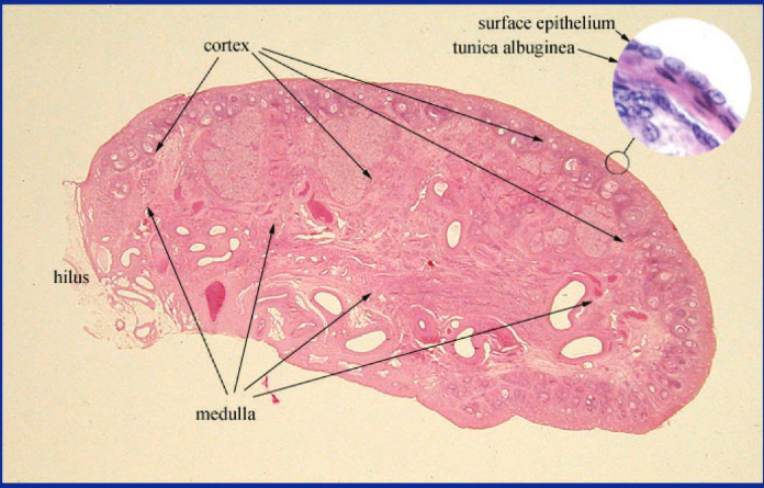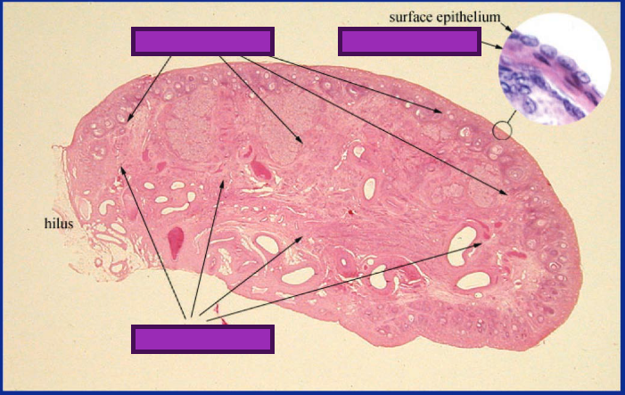 Cords of epithelioid cells occur throughout the stroma of the cortex in bitches and queens.