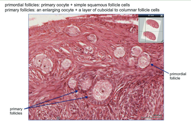 How does the size of the oocyte vary between primordial and secondary follicles?