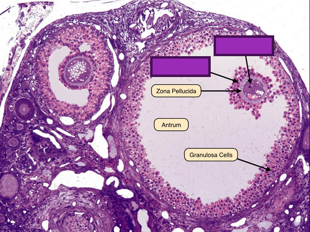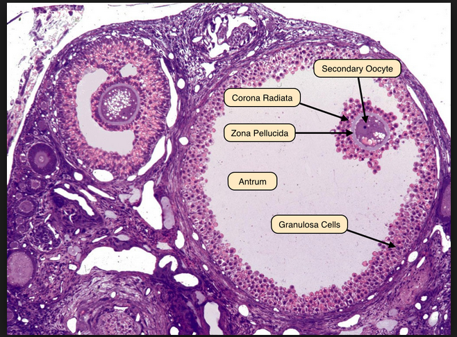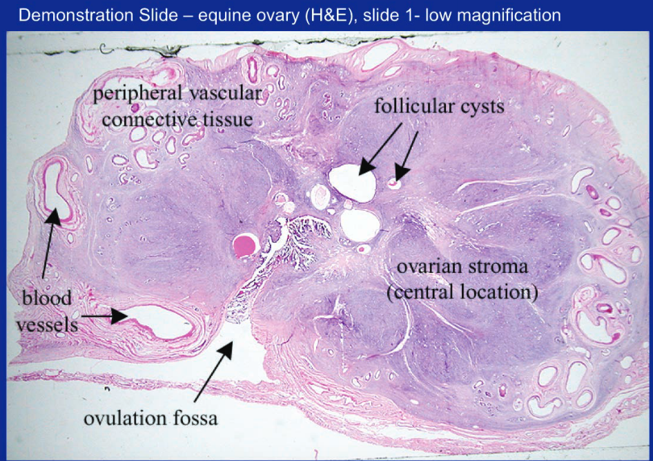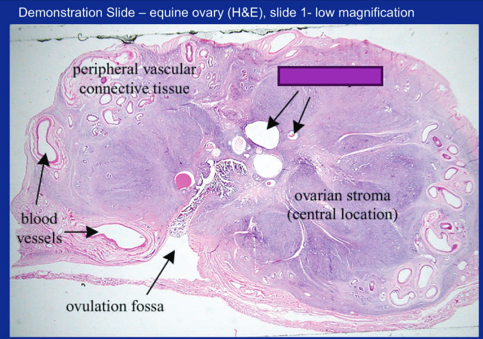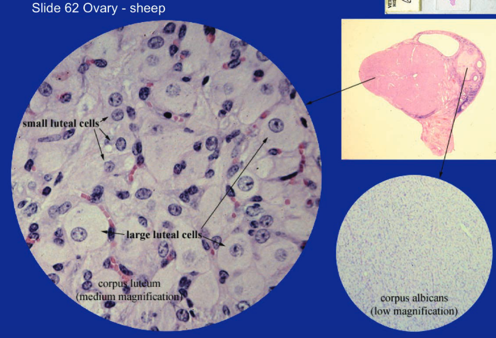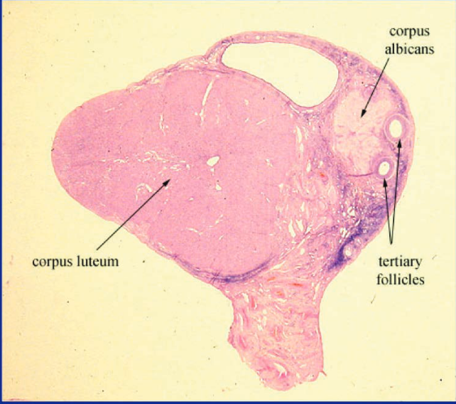* follicle ruptues, wall collapses, walls fold inward and antral cavity is nearly obliterated. Haemorrhage may occur forming CORPUS HEMORRHAGICUM– mostly in the mare, cow, and sow.