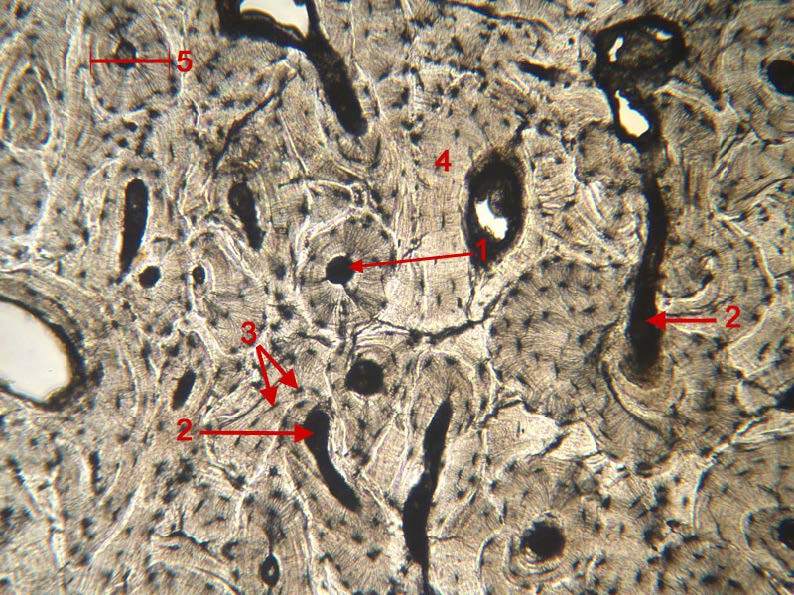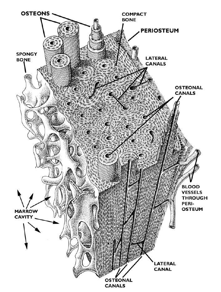 Cortical bone (compact, lamellar):