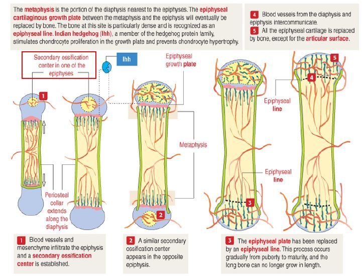 Steps: Formation of Secondary Ossification Center (postnatal)