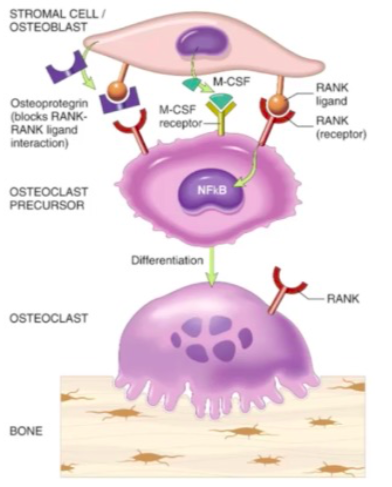 - Osteoprotegerin - blocks RANK thus inhibiting osteoclast differentiation and activity