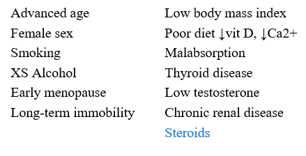 90% are due to insufficient calcium intake or post-menopausal oestrogen deficiency