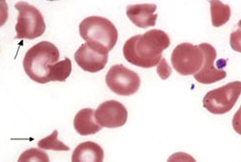 Peripheral smear showing RBC fragmentation consistent with a microangiopathic hemolytic process