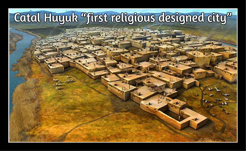 A Neolithic settlement in Anotolia, dated 6500 - 5000 BCE. One of the world’s earliest cities, it had mud-brick fortifications and houses, frescoed shrines, a fully developed agriculture, and extensive trading in obsidian, the chief material for tool-making.