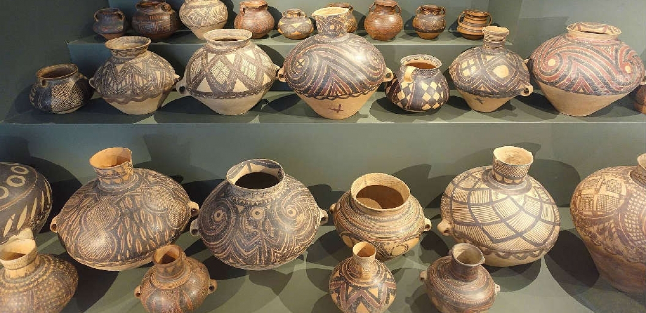 A Neolithic culture in China centered around the fertile plains of the Yellow River, characterized by pit dwellings and fine pottery painted in geometric designs.
