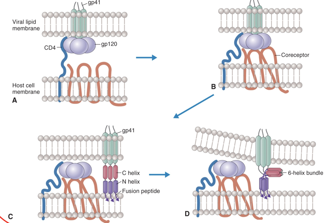 due to membrane fusion promoted by gp41, facilitated with coreceptor binding gp120