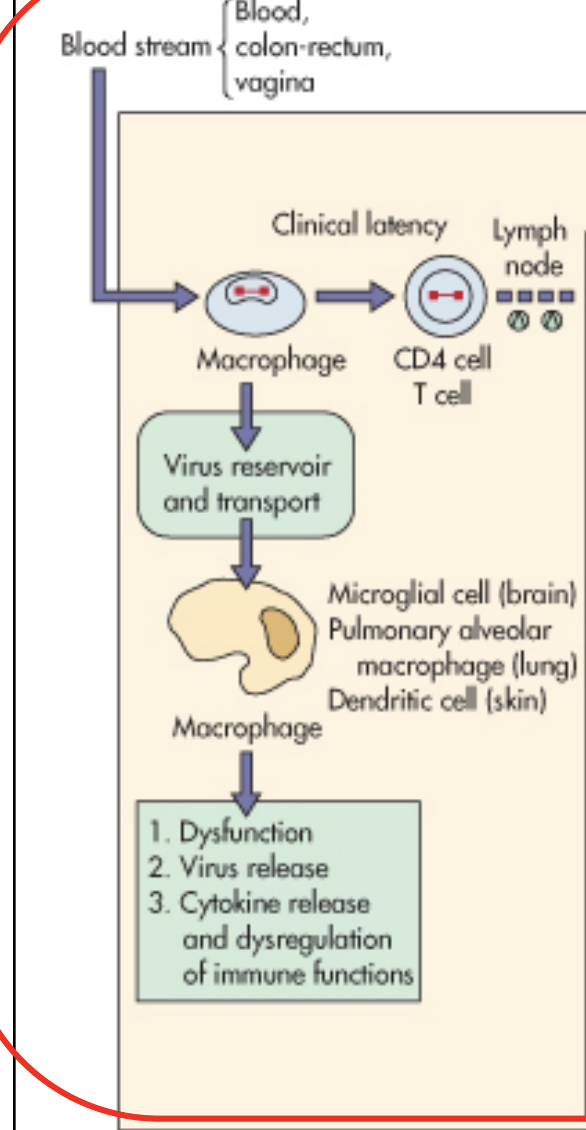 Note initial contact is with macrophage lineage cells.