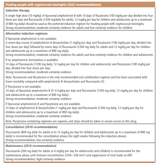 7/7 ampho B & flucytosine followed by high dose fluconazole 7/7