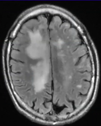 What do you see on CNS imaging in patient with toxoplasmosis in brain?