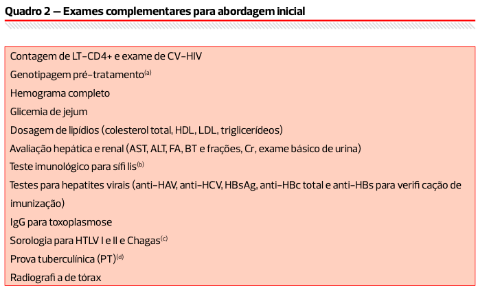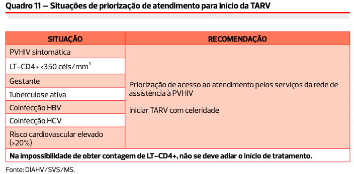 O início imediato da TARV está recomendado para todas as PVHIV, independentemente do seu estágio clínico e/ou imunológico.