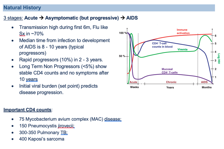 Acute → asymptomatic → AIDS