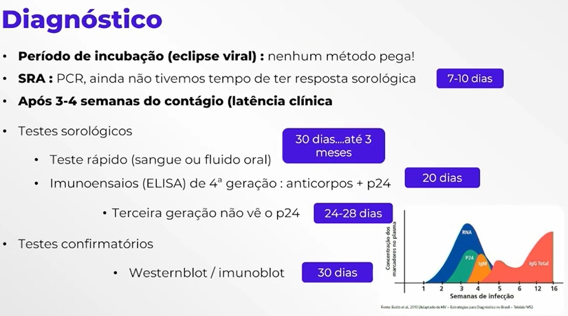 sindrome monolike com adenomegalias generalizadas sorologias negativas inclusive para HIv, plaquetopenia leve. Além disso, pode ter perda ponderal e outros comemorativos. Importante é saber que enssa fase o diagnóstico é por CARGA VIRAL PELO HIV