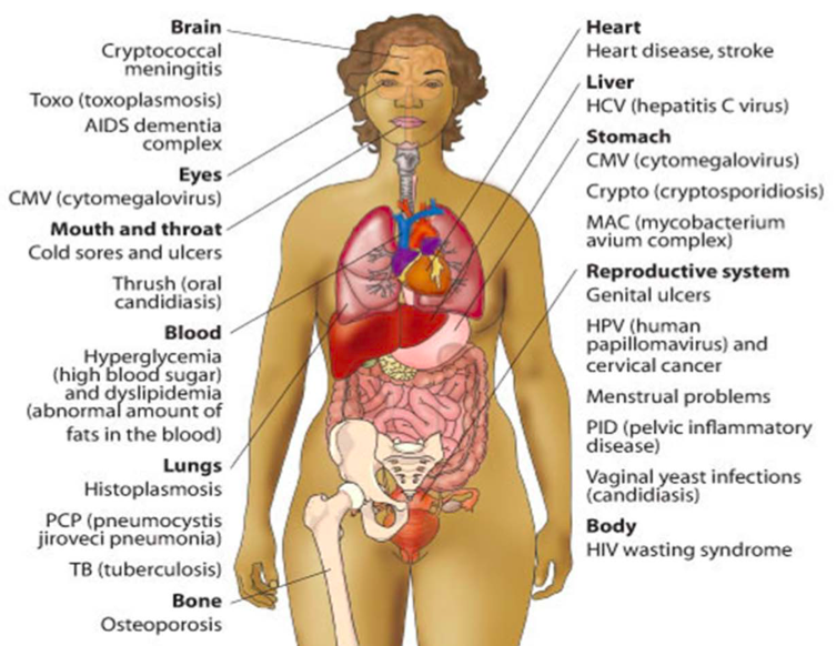 Fungal and Parasitic infections as these are usually uncommon but common in HIV as immunocompromised.