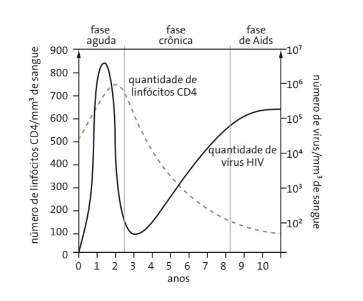 Infecção inicial com enorme replicação viral e queda abrupta do CD4, durando 6m-1a, onde a resposta imune é capaz de entrar em equilíbrio, determinando o set point viral, sendo a fase assintomática ou de latência clínica, permanecendo nela por anos e anos (a depender do set point viral), até que CD4 < 350 e uma IMSP profunda se instale, permitindo o aparecimento das infecções e neoplasias oportunistas que irão levar o paciente ao óbito.
