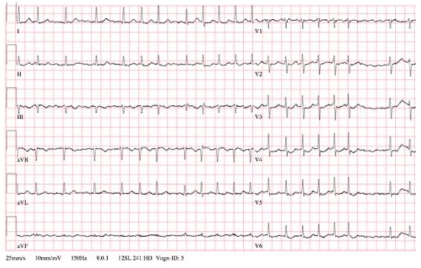 70-årig mand indlægges med hjertebanken og åndenød gennem 5 dage. Han får taget ovenstående EKG.