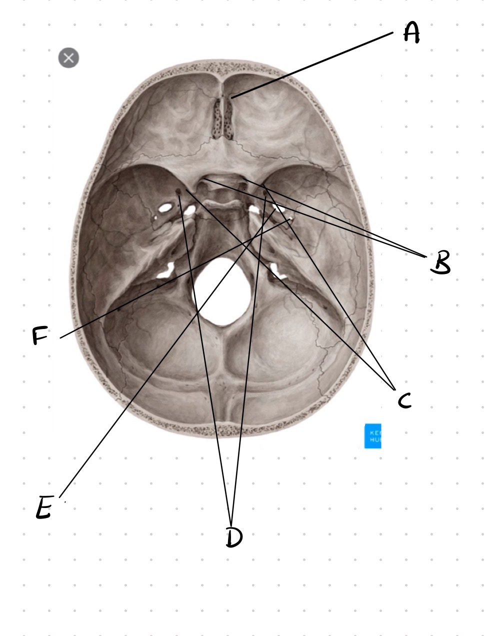 A- cribiform plate- part of ethmoid bone and where olfactory nerve passes through
