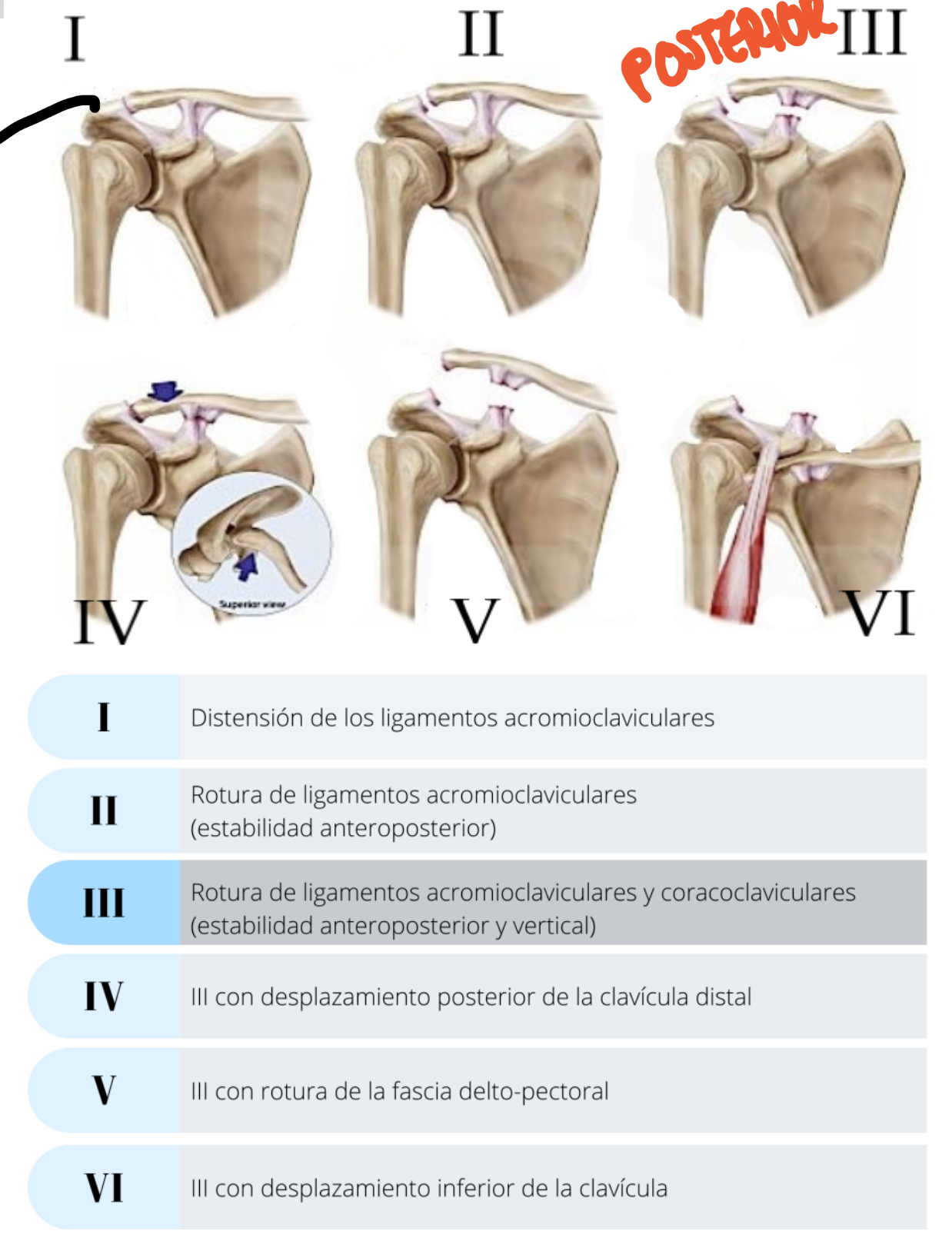 Tipos de luxaciones acromioclaviculares