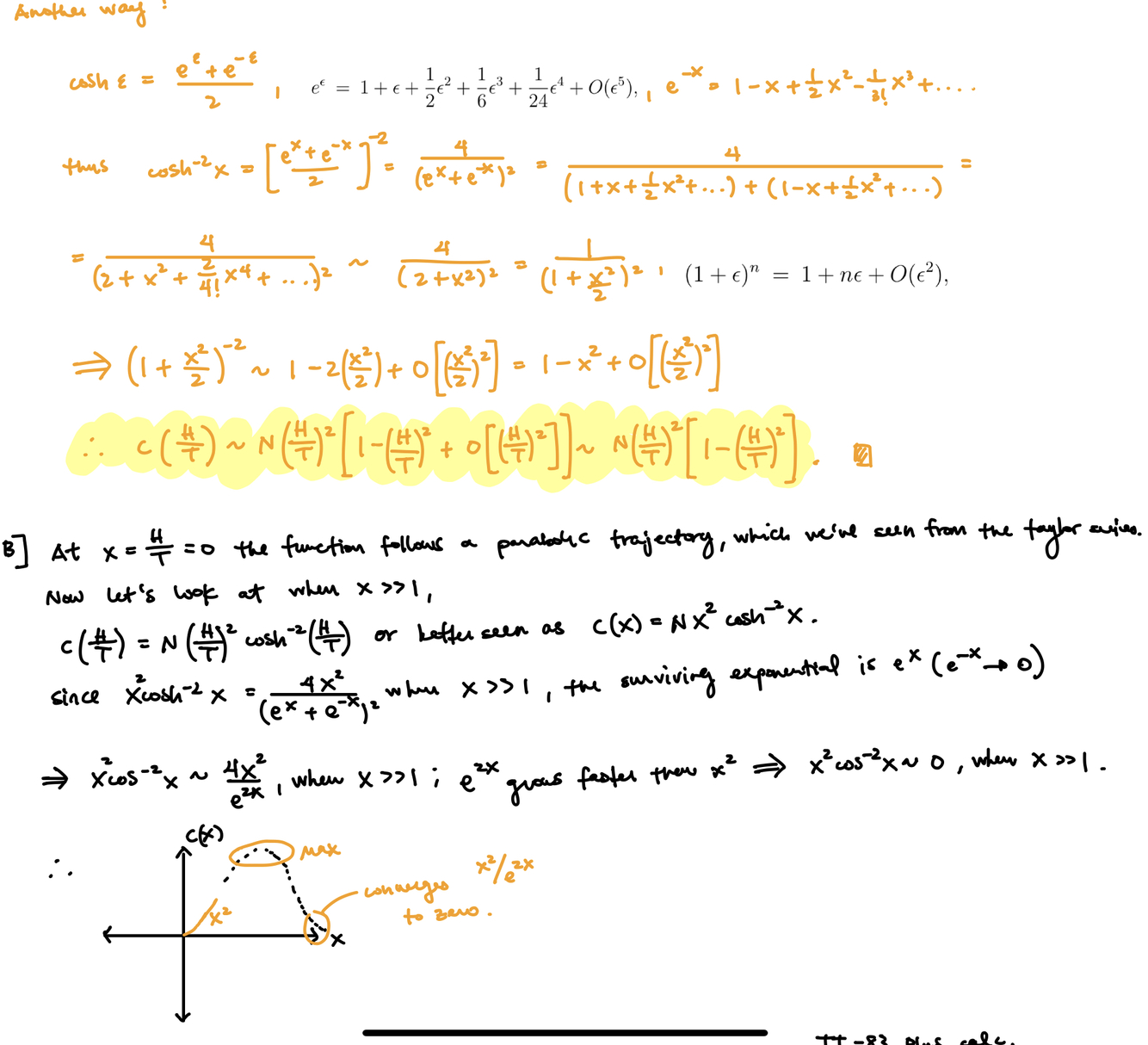(b) Sketch (freehand) the behavior of your answer as a function of x = H/T.