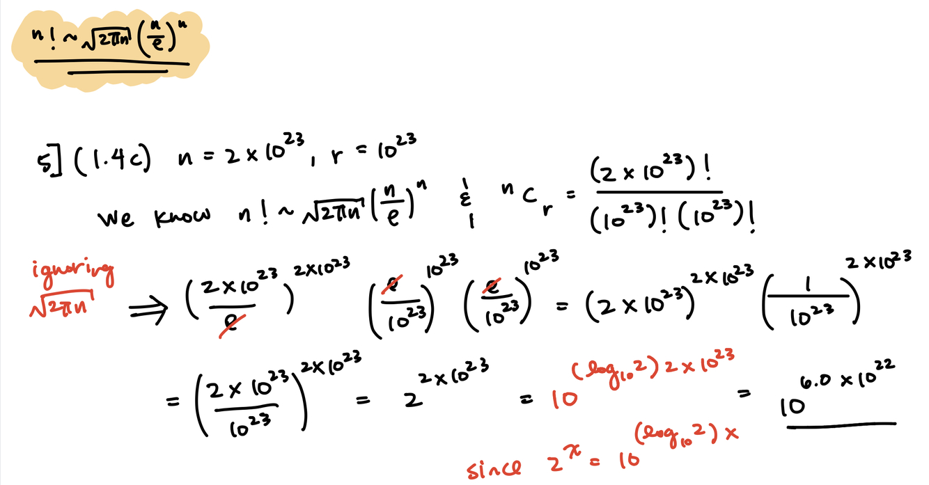 A system contains n atoms, each of which can only have zero or one quanta of energy. How many ways can arrange r quanta of energy when n = 2x1023; r = 10 23?