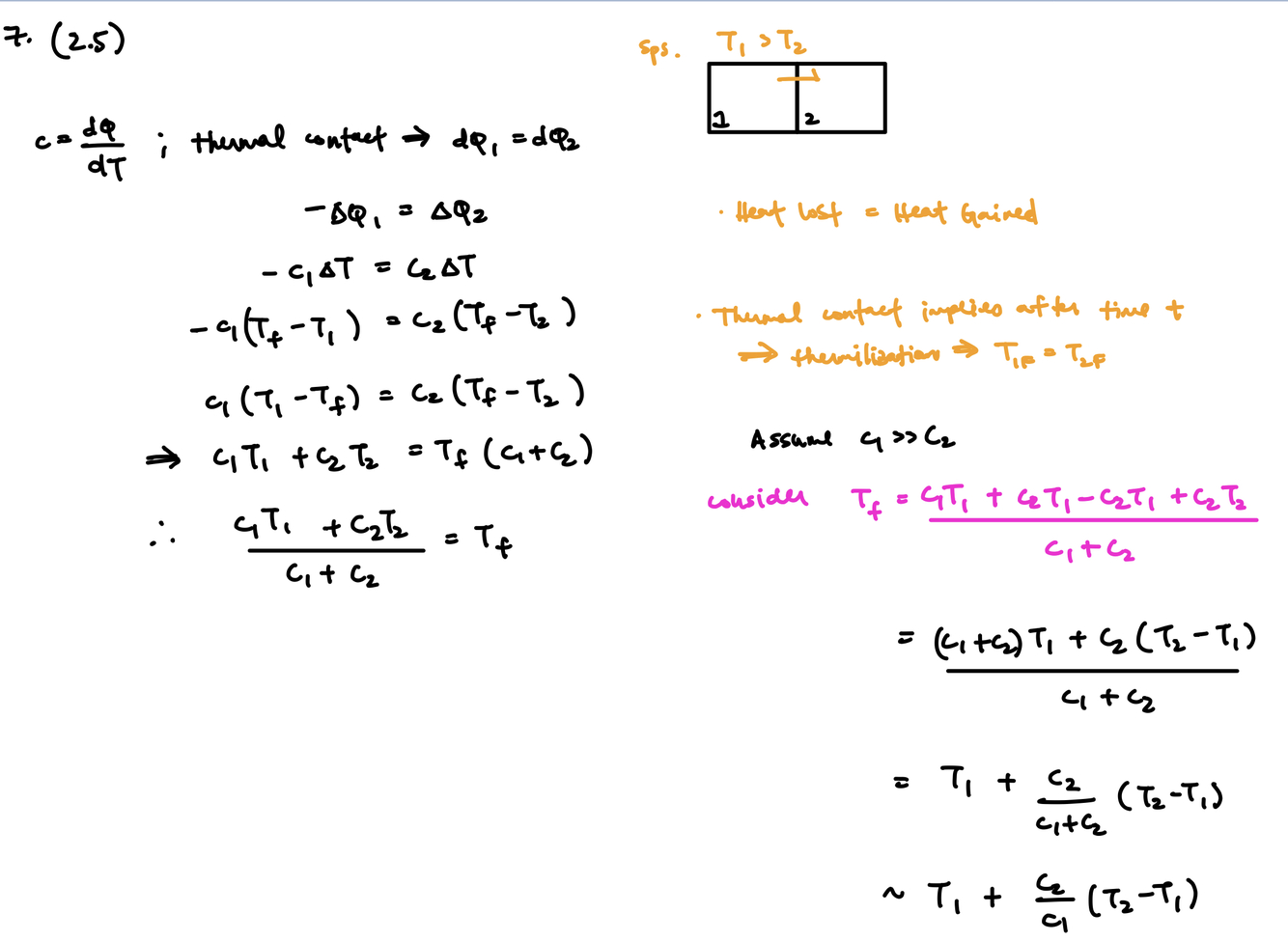 Tf = (C1T1+C2T2)/(C1+C2).