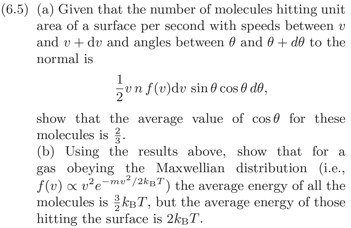 For B) you know the average energy to be 3 · ½kBT, Ch. 5. To find the average energy of those hitting the wall, use the proper integral dervived in Ch. 6.