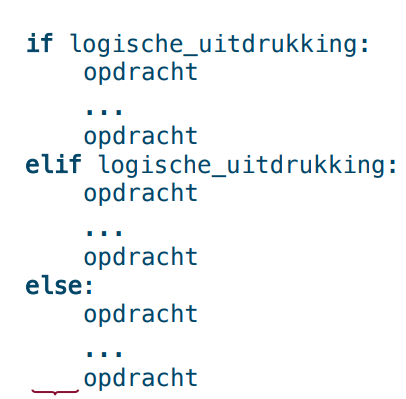 de ingesprongen blok zal uitgevoerd als voorafgaande if en elif logische uitdrukkingen vals zijn