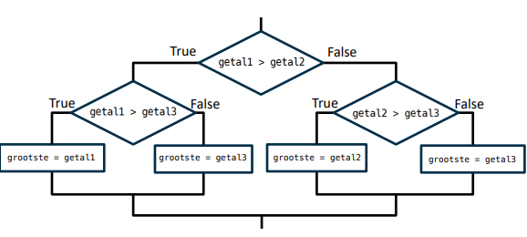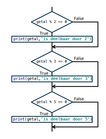 dat is wanneer er alleen opdrachten uitgevoerd moeten worden als de logische uitdrukking waar is (bv. print). dan ziet de selectieopdracht er uit als meerdere if’s na elkaar