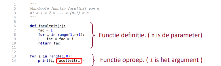 geef de vorm van een functie adhv het voorbeeld met de faculteit te berekenen