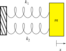 De har k1 = 20 N/m og k2 = 30 N/m.