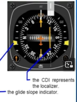 We are flying 2.5° to the left of the runway and are slightly below the glide slope, marked by the two yellow blocks on either side of the HI. If they were sitting right in the middle, we’d be on a perfect glide slope.