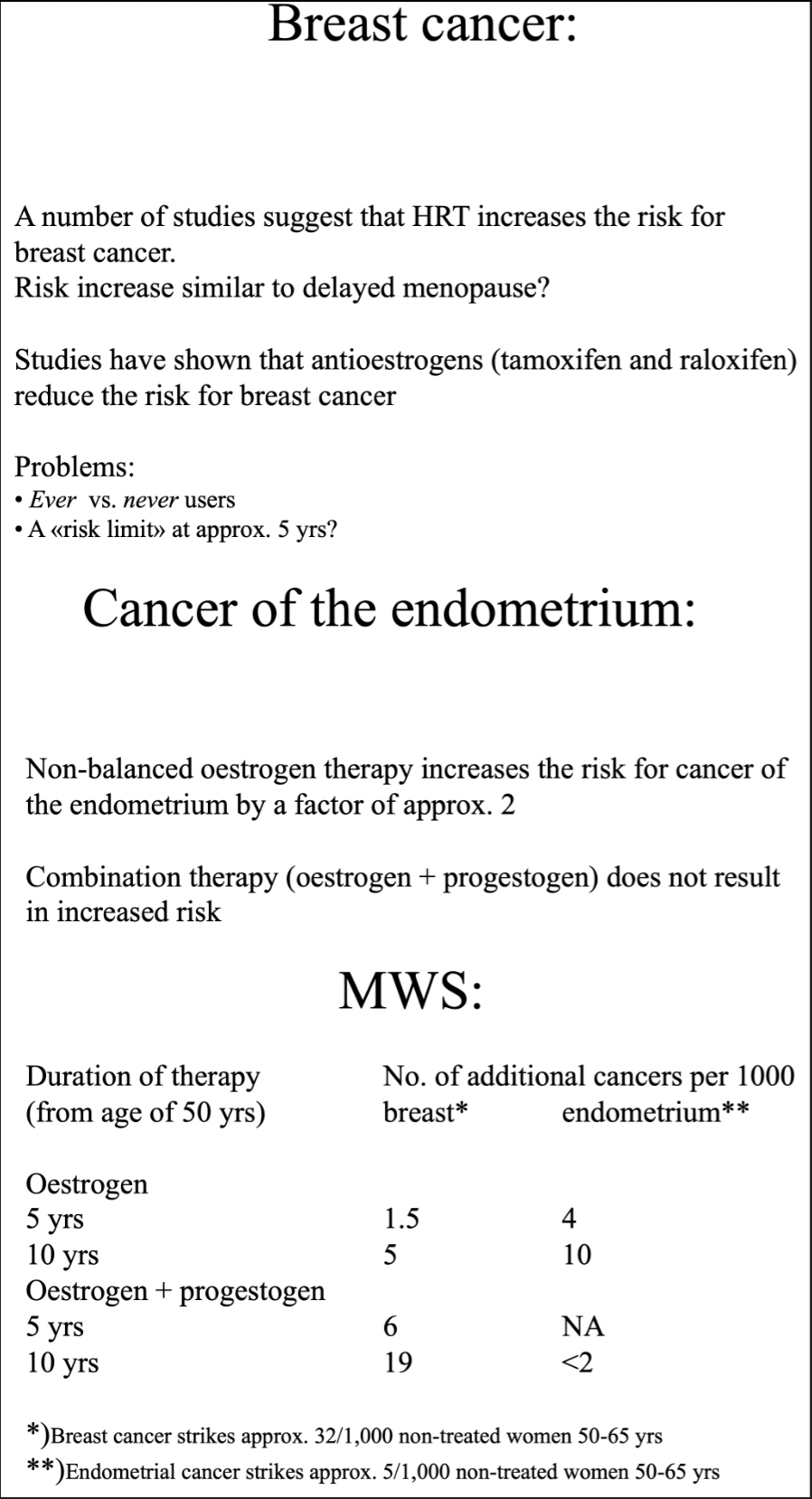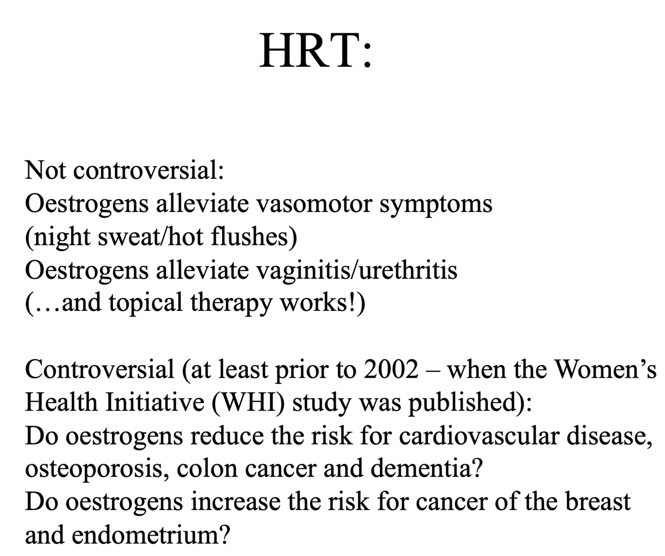 I en anekdotisk tolkning, hva er risikoen man tar ved HRT?