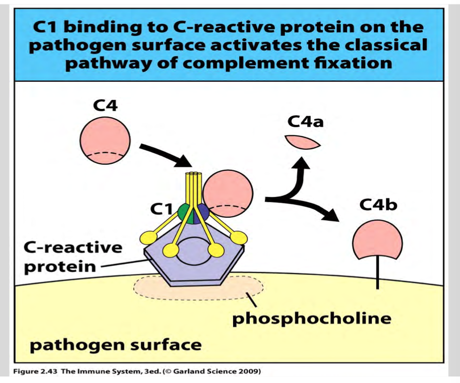 Initial complement: activates the classical pathway, in which it breaks c4 into multiple parts (c4a=small c4b= big).