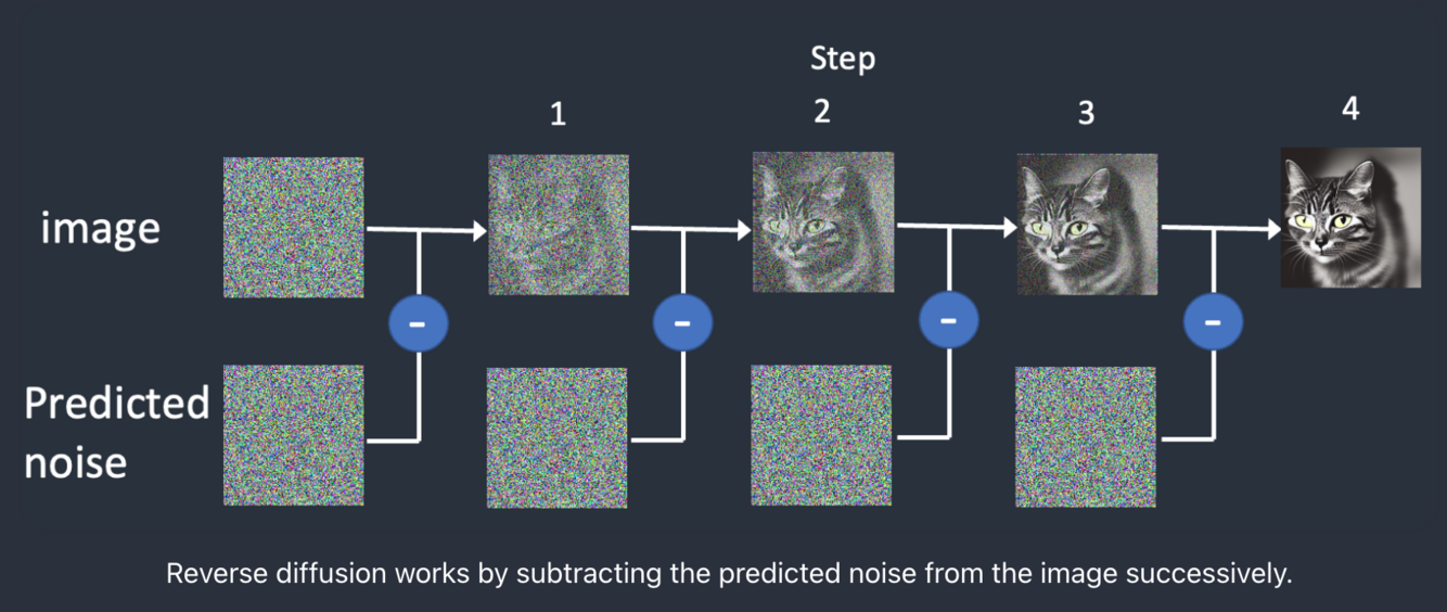After training, we have a noise predictor capable of estimating the noise added to an image.