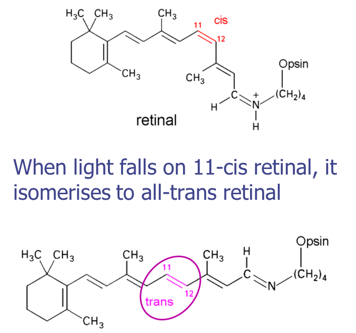 When light falls on 11-cis retinal, it isomerises to all-trans retinal