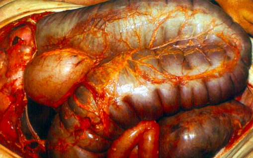 Young woman. Hx of abdominal pain and diarrhea. Now presents with worse pain, abdominal distension and vomiting.